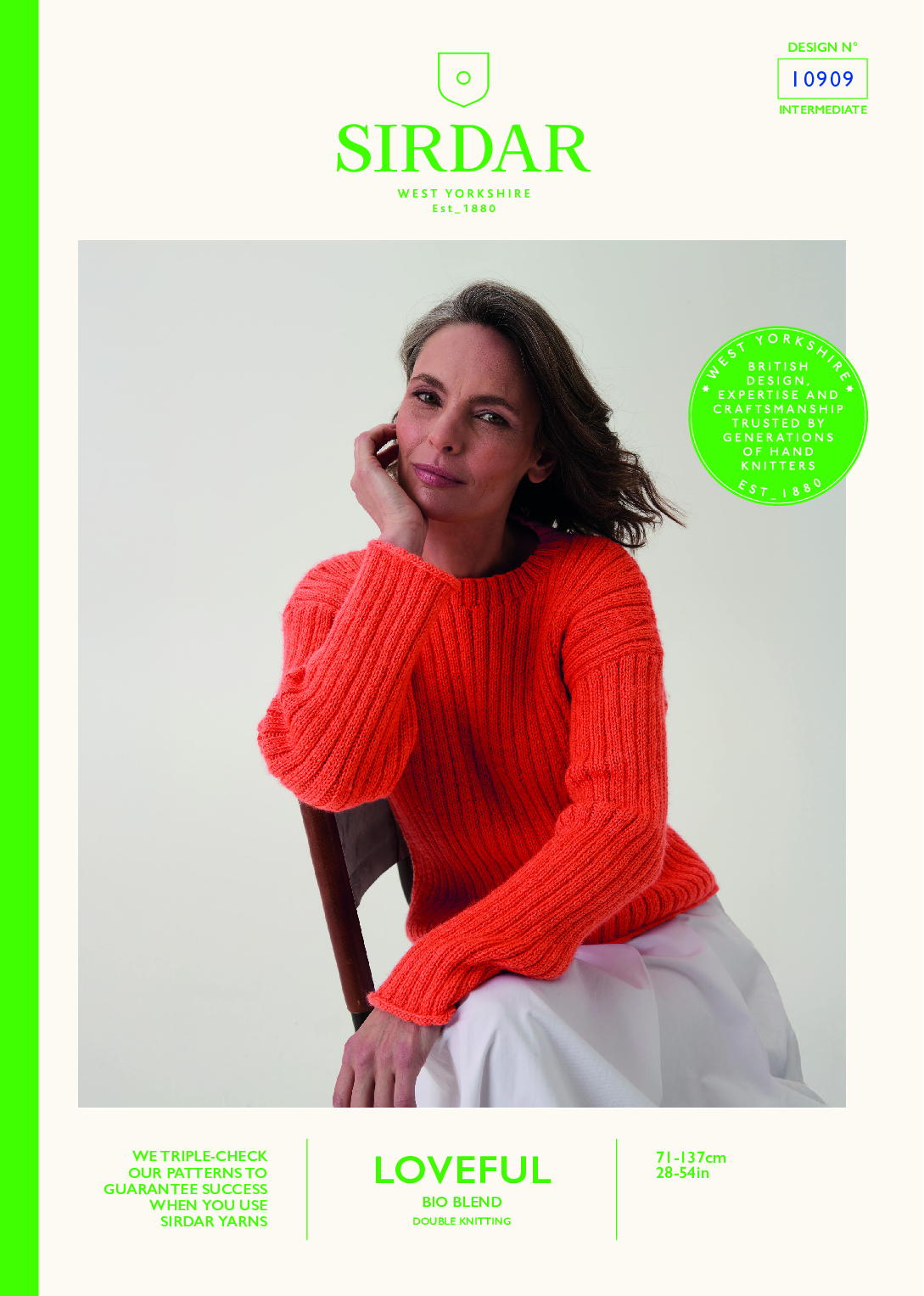 This ribbed sweater looks gorgeous in any shade of revolutionary Loveful Bio Blend. The ribbed sleeves are finished with a rolled edge to create a pretty trumpet effect at the wrists, and the relaxed drop shoulders feature gently shaped rib detail.